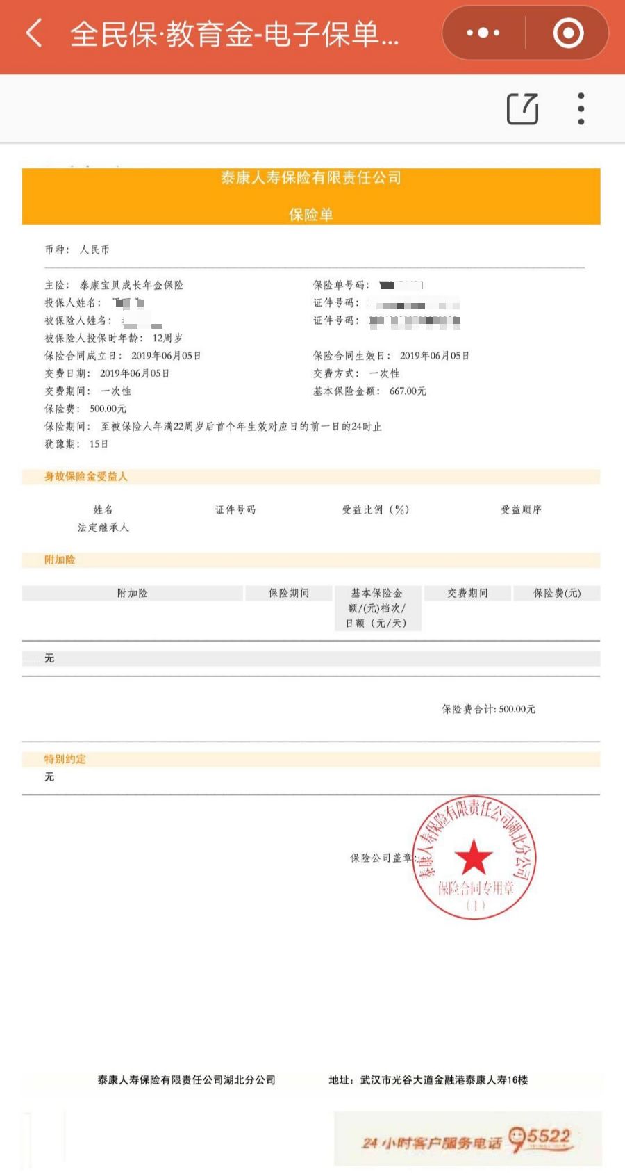 朋友对这个缴费周期明白一点之后,再次打电话给泰康客服,客服这次承认,需要缴费到满14周岁的前一周才行。