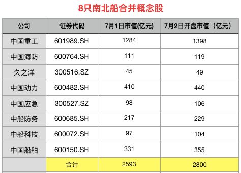 昨日(7月1日)晚间,南北船旗下的中国重工(601989)、中国海防(600764)、久之洋(300516)、中国动力(600482)、中国应急(300527)、中船防务(600685)、中船科技(600072)、中国船舶(600150)八家上市公司集体发布公告,坐实了此前坊间流传的南北船合并的消息。