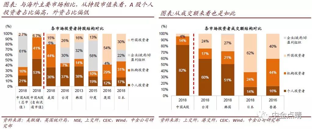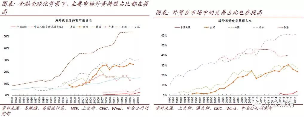 国际横向比较来看,外资及整体机构持股比例还有上升空间
