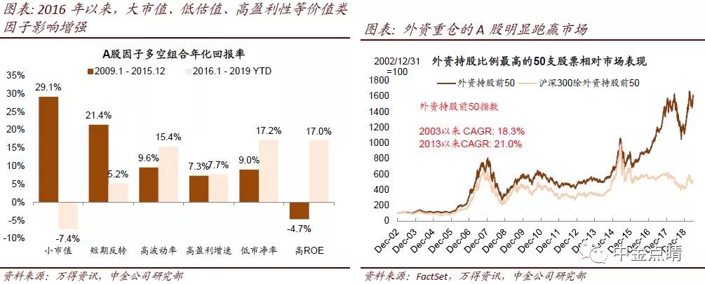 A股市场近年来呈现以下值得注意的现象,我们认为这些现象除了与中国经济新老结构转换、以消费为代表的“新经济”类公司持续受到追捧之外,A股投资者结构近年来持续走向机构化、国际化也起了重要作用: