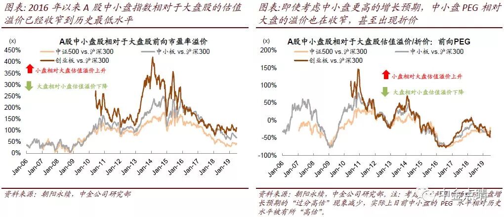 3)中小盘估值溢价收窄:在A股市场,以创业板为代表的中小市值股票对大盘股估值长期享有溢价,然而2016年以来,中小盘指数相对于大盘股的估值溢价已经收窄到历史最低水平。