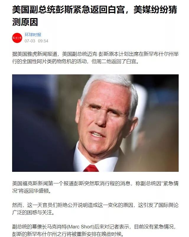 有分析称,以彭斯副总统的身份,这么紧急,不外乎几种: