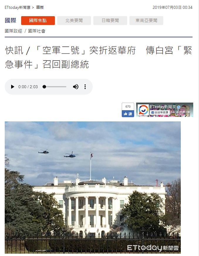 据凤凰网、youtube等媒体报道,空军二号即将起飞,但突然间,副总统彭斯接到命令,立刻取消原来行程,马上赶回白宫。这不是故事,而是北京时间7月3日一大早的事情。按照美国福克斯新闻的报道,原因是“不明的紧急事件”。尽管彭斯的发言人法拉赫(Farah)随即“辟谣”:出现了一些需要副总统留在华盛顿的事情,但不是引起警报的原因。他期待很快重新安排前往新罕布什尔州的行程……
