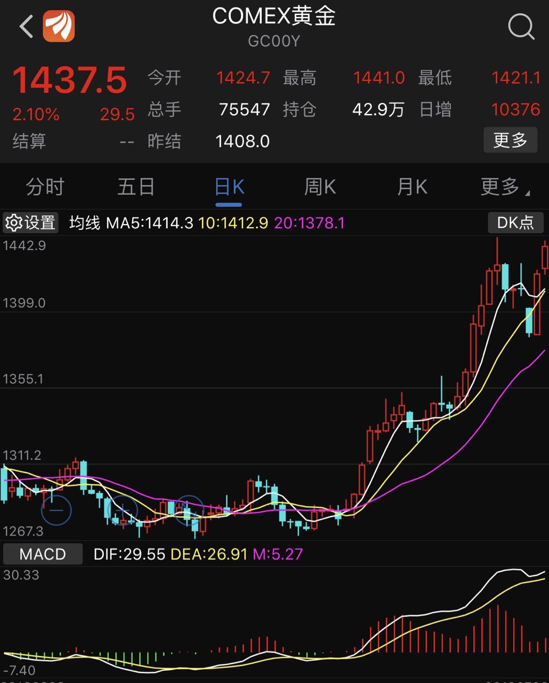 受这种不确定消息刺激,早盘黄金迎来爆发。国际金价再度回到1440美元附近,并一度冲破这个六年高位。