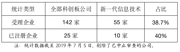 表:新一代信息技术产业科创板公司数量和比例