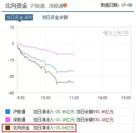 果不其然,今天一早A股市场即出现了大幅跳水的情况。上证指数一度杀跌超过90点,跌幅亦超3%;核心资产上证50的最大跌幅亦超过2.8%;A股市值蒸发1.55万亿元人民币。出现这种行情的背景是,北上资金不到半日净流出额度超过30亿元。