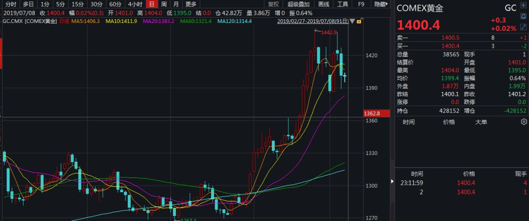 然而,从欧洲的情况来看,现任欧洲行长德拉吉将于2019年10月卸任,现任IMF总裁拉加德有望接任。鉴于拉加德缺乏央行从业经历,欧洲有声音希望德拉吉能重启量化宽松,从而部分消除拉加德上任后的政策不确定性。一旦欧洲重启量化宽松,将利好美元,打压黄金。但从另外一个角度来看,也无形中加大了美联储降息的压力。