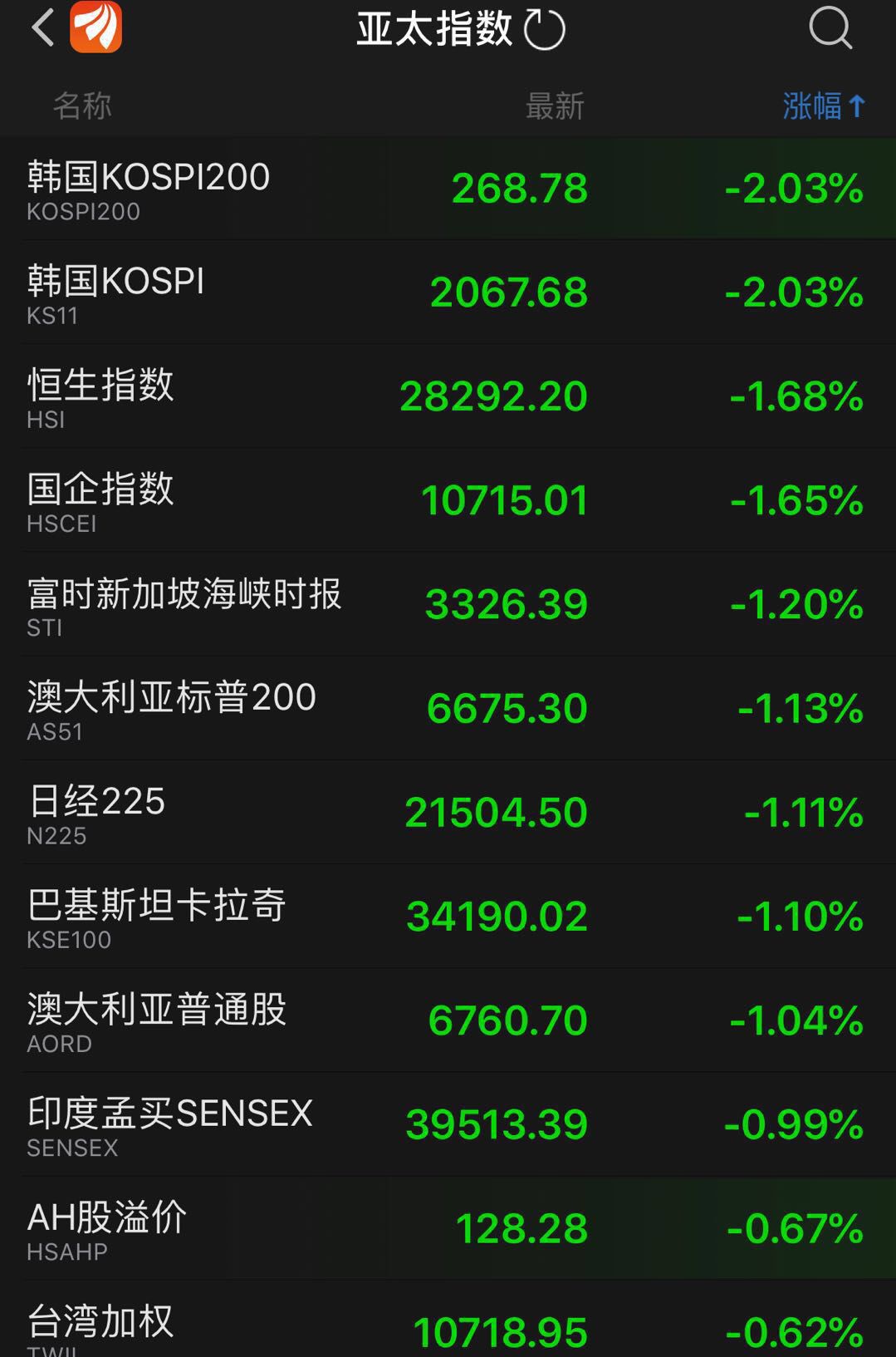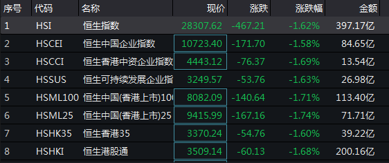 香港市场亦全线杀跌。多只细价股更是暴跌。北京体育文化(01803.HK)、承兴国际控股(02662.HK)跌超85%,中国水业集团(01129.HK)、瑞慈医疗(01526.HK)和亚洲电视控股(00707.HK)跌超40%。