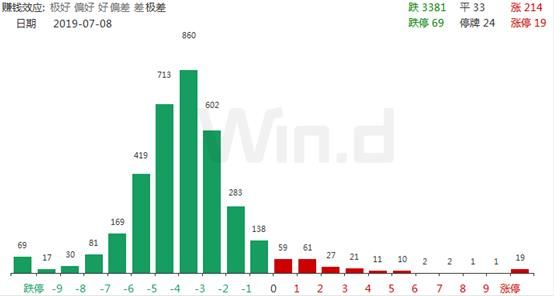 个股跌多涨少,69股跌停,19只个股逆势涨停,3381只个股下跌,占比93%。