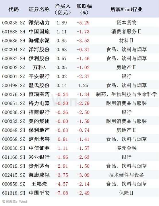 Wind统计周一北向资金前十大活跃个股数据显示,当日北向资金净卖出中国平安超7亿元,卖出五粮液、海康威视4.57亿、3.75亿元。潍柴动力和中国国旅则获小幅净流入逾1亿元。
