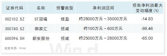 另外,ST冠福、御家汇、新安股份等3股业绩出现变脸,发布公告向下修正中报业绩。