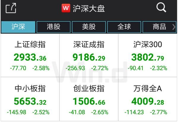 周一(7月8日),A股三大股指早盘单边下行,午后低位震荡。截至收盘,上证指数报2933.36点,下跌2.58%;深证成指报9186.29点,下跌2.72%;创业板指报1506.66点,下跌2.65%。