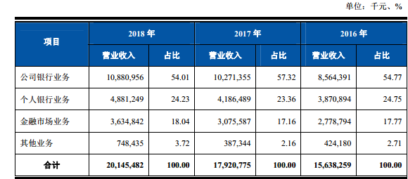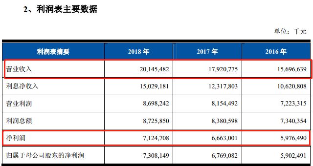 2016年至2018年,该行的营业收入从156.97亿元增至201.45亿元,复合年增长率为13.29%;归属于母公司股东的净利润从59.02亿元增至73.08亿元,复合年增长率为11.27%。