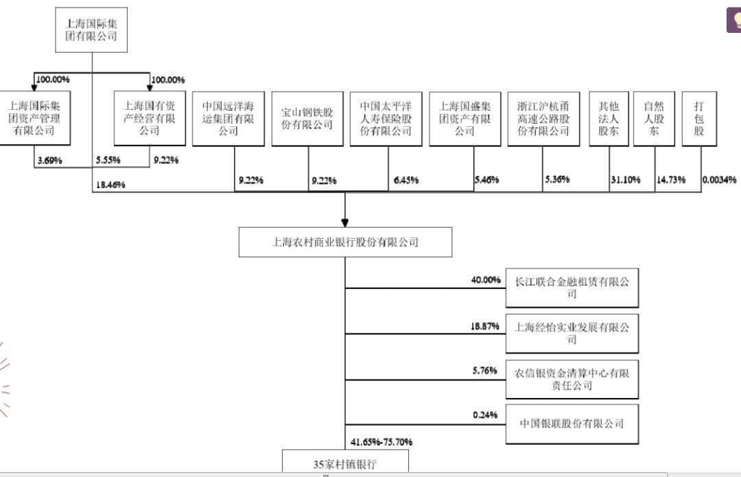 今年3月15日,中国太平旗下的太平人寿保险公司公告称,斥资28.63亿元从深圳联想科技园手中收购上海农商行4.149亿股、4.78%的股权。招股书显示,截至今年5月末,除了第一大股东,上海农商行持股5%以上的股东分别是中国远洋海运集团持股9.22%、宝山钢铁股份9.22%、太平洋寿险6.45%、上海国盛集团资产有限公司持股5.46%以及浙江沪杭甬高速公路股份持股5.36%。