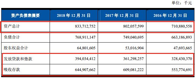 招股书显示,近三年多来,上海农商行资产规模增速稳健,截至2018年末,上海农商行资产规模达8337亿元,比年初增长316亿元,增幅为3.8%。不过业务规模发展较快,2016年至2018年吸收存款5537亿元、6091亿元、6449亿元,涨幅较快。去年该行各项存款余额6210亿元,较年初增幅6.8%;贷款余额3996亿元,较年初增10.4%。