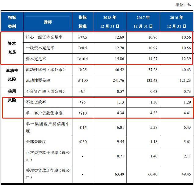 数据显示,截至2016年末、2017年末和2018年末,该行核心一级资本充足率分别为10.56%、10.96%和12.69%,一级资本充足率分别为10.56%、10.97%和12.70%,资本充足率分别为12.39%、14.27%和15.86%。
