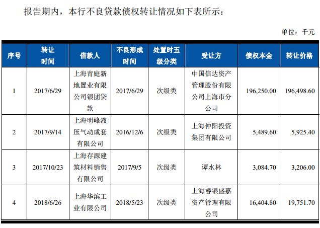 值得注意的是,今年7月2日,上海联合产权交易所挂出上海农村商行闵行支行持有的51户不良资产包的债权转让信息。据转让信息显示,截至2018年7月2日,51户不良资产包本金余额2.98亿元,利息0.82亿元,共计3.8亿元。