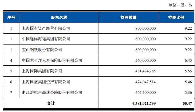 上海国资持股18.46%,为第一大股东