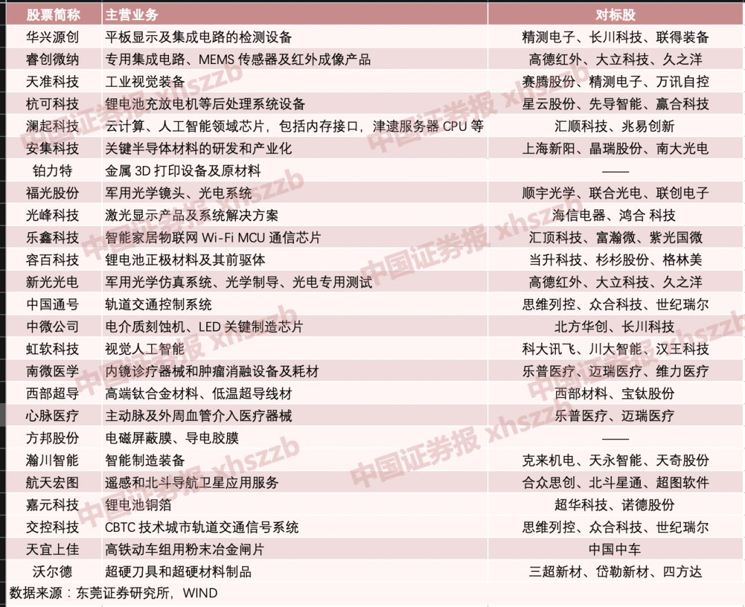 中国证券报(ID:xhszzb)记者还根据上交所公布的公开信息,对这25家上市公司的发行信息以及对标标的进行了梳理: