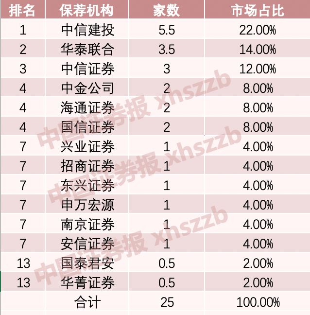 保荐机构哪家强?中信建投排第一。