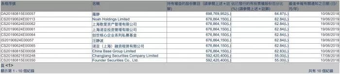 港交所披露的权益变动信息显示,诺亚财富创始人汪静波、上海歌斐资产管理有限公司、上海诺亚投资管理有限公司、创世核心企业系列私募基金、诺亚(上海)融资租赁有限公司在6月19日共同获得6.77亿股承兴国际控股股份,占比62.84%。