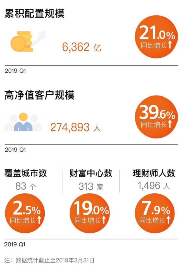 官网介绍,截至2019年一季度末,累计财富配置规模6362亿,为超过27万名高净值人士提供综合服务。