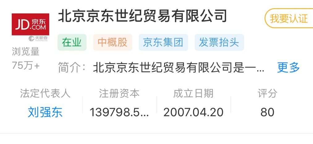 工商资料显示,北京京东世纪贸易有限公司成立于2007年,法定代表人为刘强东。