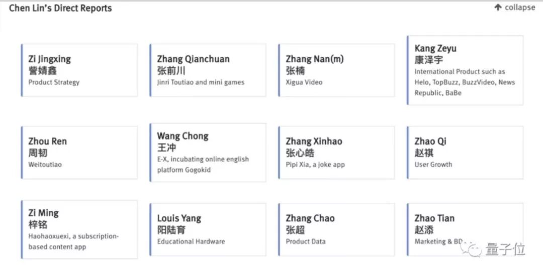据外部媒体2019年4月曝光字节跳动最新架构名单显示,Muse创始人阳陆育目前负责硬件教育项目并向陈林汇报