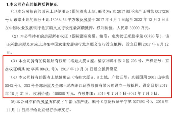 具体而言,在上泽广霁出具的法律意见书中,在“发行人资产受限情况”部分,其列举了洛娃科技设置的5项对外担保,包括酒店房屋、土地、商标专用权、子公司股权等内容,并表示“无其他重大资产受限情况”。