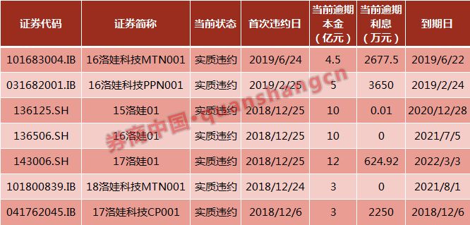 去年12月6日,“17洛娃科技CP001”未按时兑付本息,此后洛娃科技债券开始陆续发生实质性违约或交叉违约。Wind数据显示,目前,洛娃科技共有7只债券发生实质违约,合计逾期本金达45.7亿元。