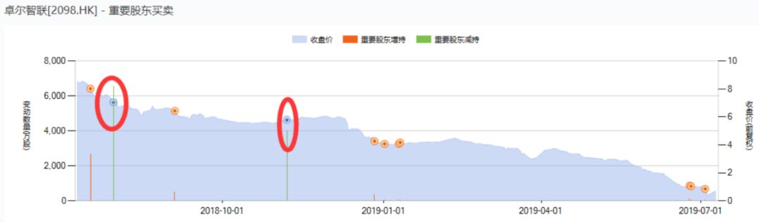 万得数据显示,自2018年4月至今只发生过两笔重要股东减持,执行董事于刚和执行董事卫哲。
