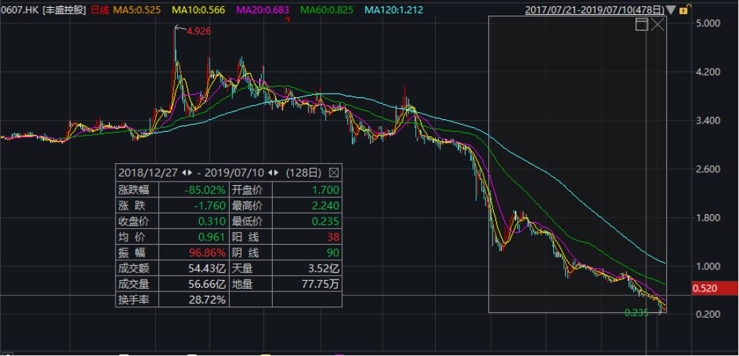 万得数据显示,在卓尔智联股价暴跌的同时,丰盛控股股价也未能幸免,自2018年年底陷入流动性危机以来,丰盛控股股价继续暴跌85.02%。