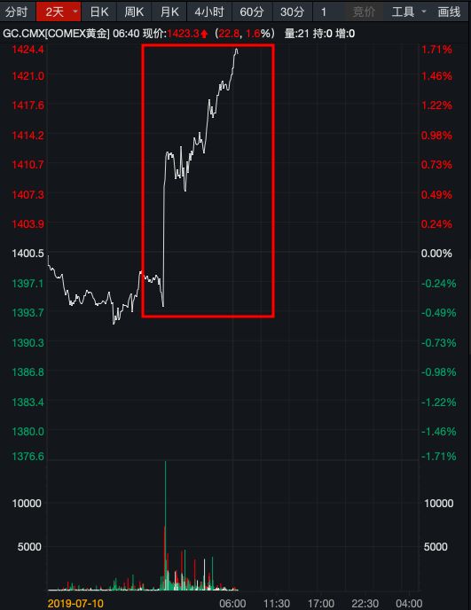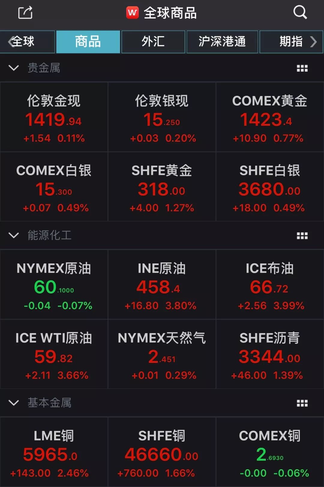 4、商品,包括原油、黄金在内的商品全线大涨,油价创6周以来新高,黄金瞬间冲上1400点。