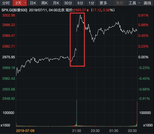 标普500指数一度冲破3000点大关,收盘报2993.07点,涨幅0.45%。