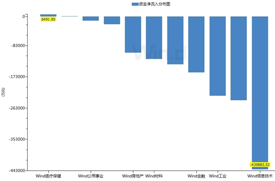板块方面,Wind数据显示,医疗保健、电信服务板块周四获得主力资金净流入规模分别达6491.95万元、705.41万元。此外,信息技术、日常消费、工业板块净流出规模居前。