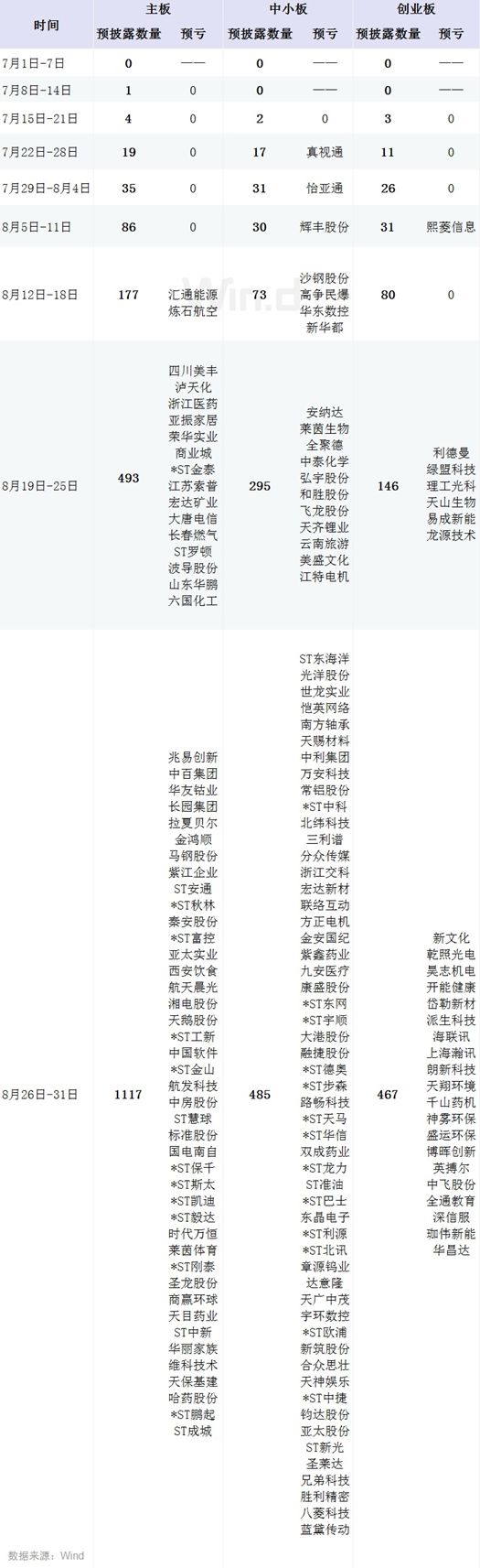 此外,大量中报预亏(包括预减、续亏、首亏)的企业,也将在8月中旬后披露年报。