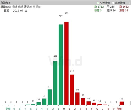 个股方面,当日共有1632只个股飘红,其中39只个股涨停;共有1712只个股收跌,其中3只个股跌停。