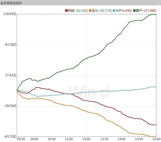 Wind数据显示,当日机构净流出规模62.25亿元,主力净流出规模82.17亿元。