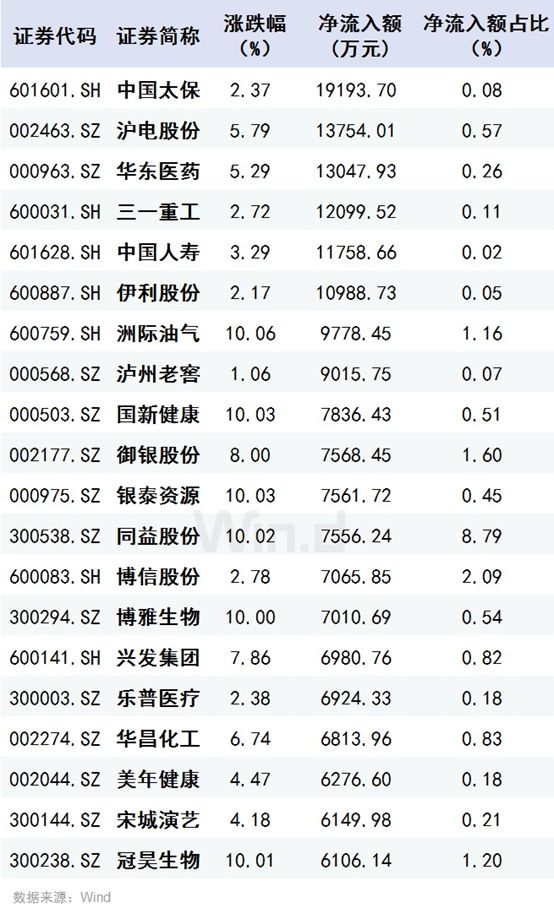 随着北向资金重回净流入,多只个股也获得积极加仓。