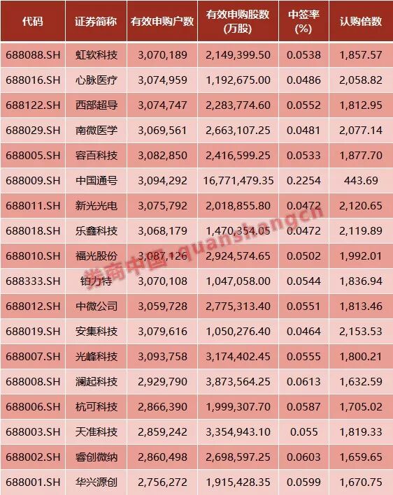 随着首批25家科创板企业发行工作陆续推进,新的中签结果不断出炉。