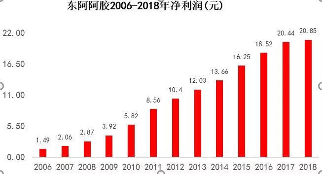 统计数据显示,过去12年,东阿阿胶净利润从2006年的1.54亿元增长到2018年的20.87亿元,连续保持了正增长,且净利润年复合增长率在20%以上。对于一家市场公认白马股,东阿阿胶也被价值投资者奉为典范。公司的九朝贡胶曾被私募大佬赵丹阳作为礼物送给巴菲特。
