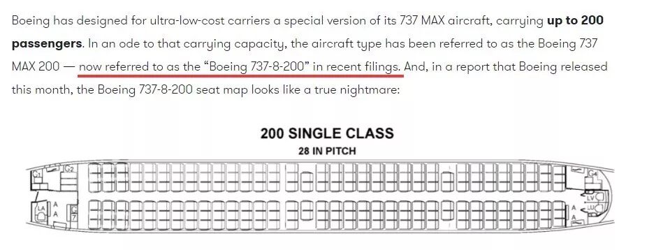 根据国外一些专业网站的报道,这款客机是因为设计缺陷而已被全球多个国家禁飞的波音737 MAX 8型客机的改版,其改变之处在于座位数增加到了近200个,故而得名“737 MAX 200”。
