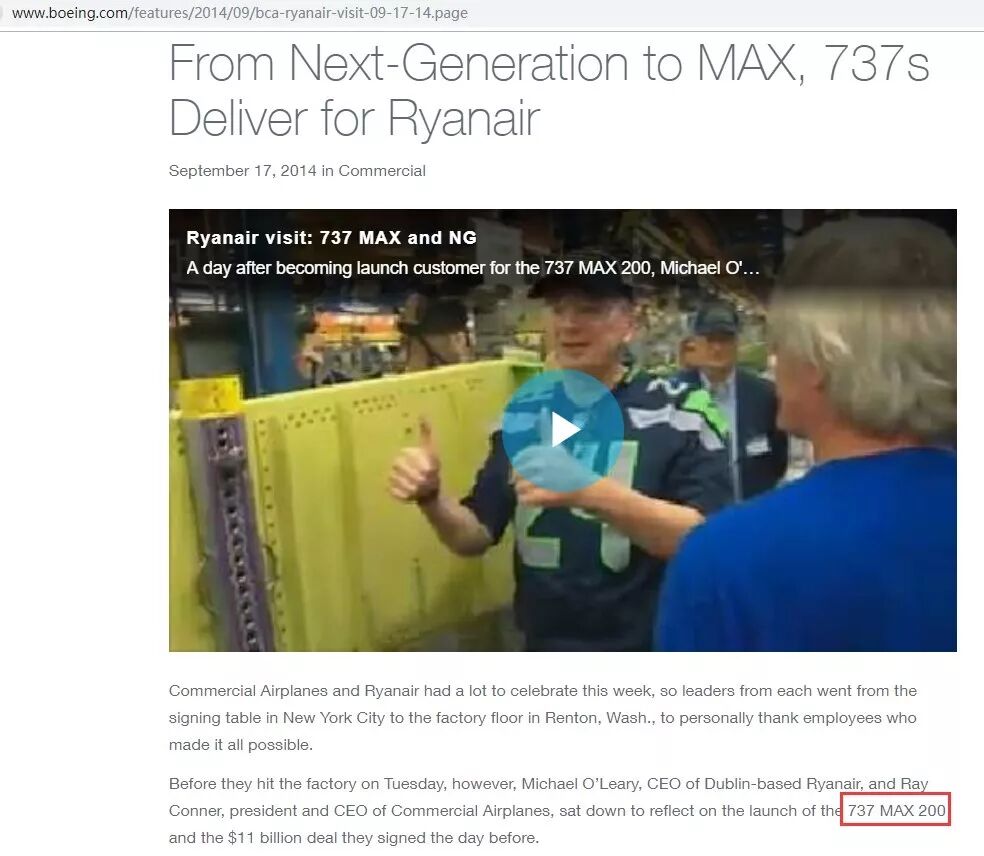 这里值得注意的是,在2014年瑞安航空宣布从波音订购这款客机的时候,波音方面确实曾经在其发布的官方新闻中称这款客机为“737 MAX 200”。在2016年越南VietJet航空公司宣布购买100架“737 MAX 200”时,波音公司也仍然用这个名称称呼这款客机,甚至波音公司推出的宣传图片里还在飞机上印着“737 MAX 200”的字样。