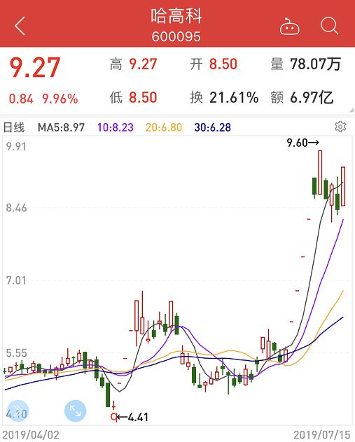 哈高科于15日开盘后,股价涨停。这是公司7月2日复牌以来的第6个涨停板。此前,由于大盘回调,加之湘财证券被曝出踩雷承兴,公司股价一度跌停。