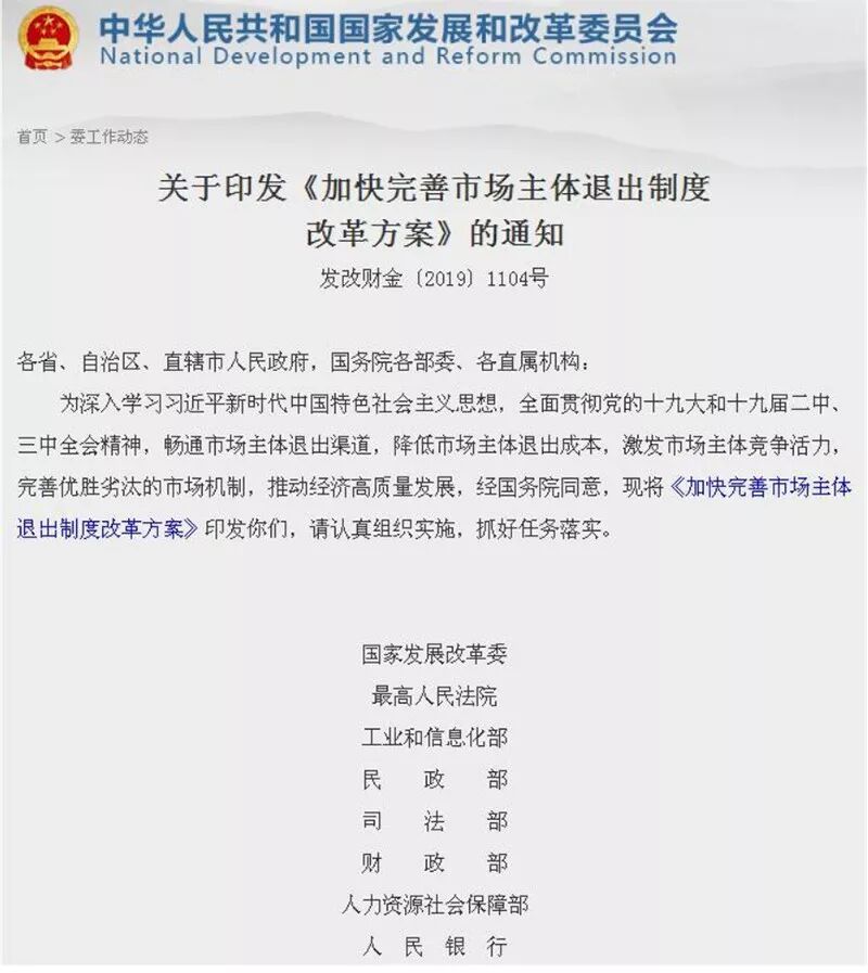 近日,国家发展改革委、最高人民法院等13部委印发了《加快完善市场主体退出制度改革方案》(以下简称《改革方案》),提出“分步推进建立自然人破产制度”。这样就把破产法“补全”了。