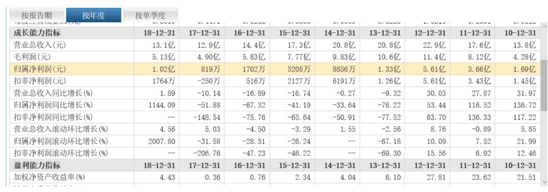 从过去21年的中报来看,2000年是一个净利润的小高峰,此后便步步下降,一直到2009年才回到接近2000年的水平,好日子在2013年到达高峰,金种子酒当年实现净利润3.08亿元,2014年略微下降,但从2014年开始是断崖式下跌,此后便是连年萎缩,2018年仅比2017年多了不到100万元。