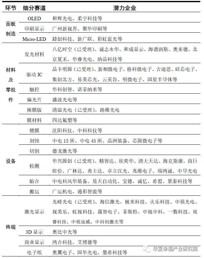 附录:新型显示科创板登陆潜力企业名单