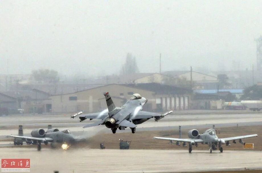 ▲资料图片:一架F-16战斗机(中)在韩国乌山美军基地降落,远处A-10攻击机正准备起飞。