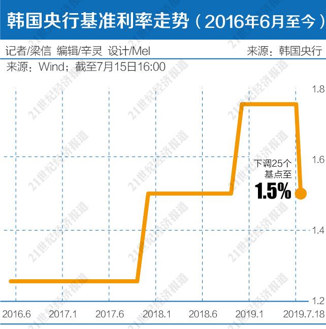 “这场雨”来得比预计的还早了一些。7月18日上午,韩国央行宣布将基准利率下调25个基点至1.5%,这是该行去年11月25日加息25个基点以来首次调整利率水平,这也是该行三年以来首次降息。