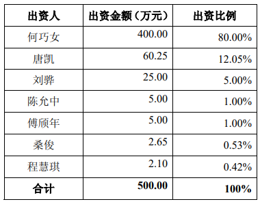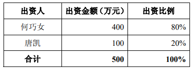 招股书显示,1998 年3月17日,北京市东方园林艺术公司改建设立为股份合作制企业,出资人为何巧女和唐凯两人,两人合计出资500万元。